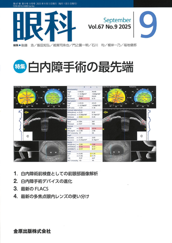 今回は、特集「白内障手術の最先端」で、当院の前田直之医師が「白内障術前検査としての前眼部画像解析」を執筆いたしました。また、その原稿の図が表紙にもなっております。